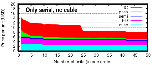 Finally, this is the price if also the serial cable is omitted. This considerably reduces the cost. Note that we still include the serial interface on the main board, because a device without it would not be programmable at all.