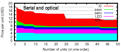 The next graph is for a circuit that omits the experimental optical interface. The price difference is fairly small.